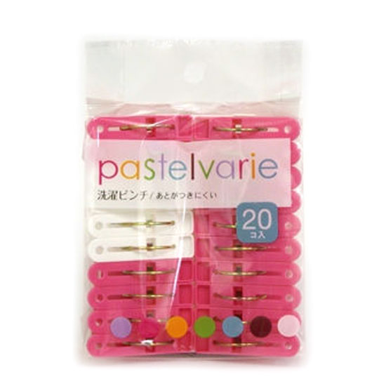 As shown is a laundry clip pack containing 20 pieces. The clips are made of quality plastic. They also come in different nice solid colors.