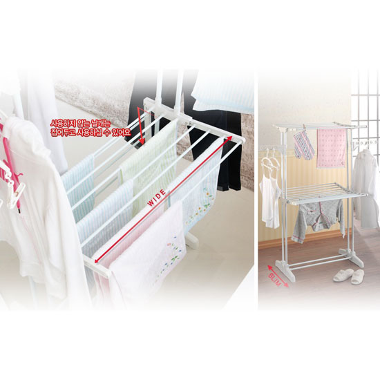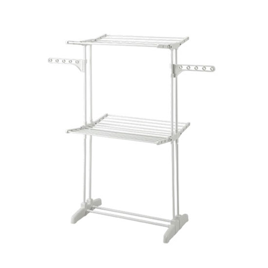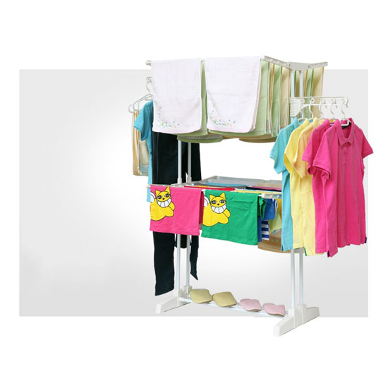 Designed with a white finish, this laundry hanger allows you to hang shirts, trousers and towels at the same time. The laundry hanger stands on the floor firmly with the durable stand. You can fold the laundry hanger to save space when you are not using it.