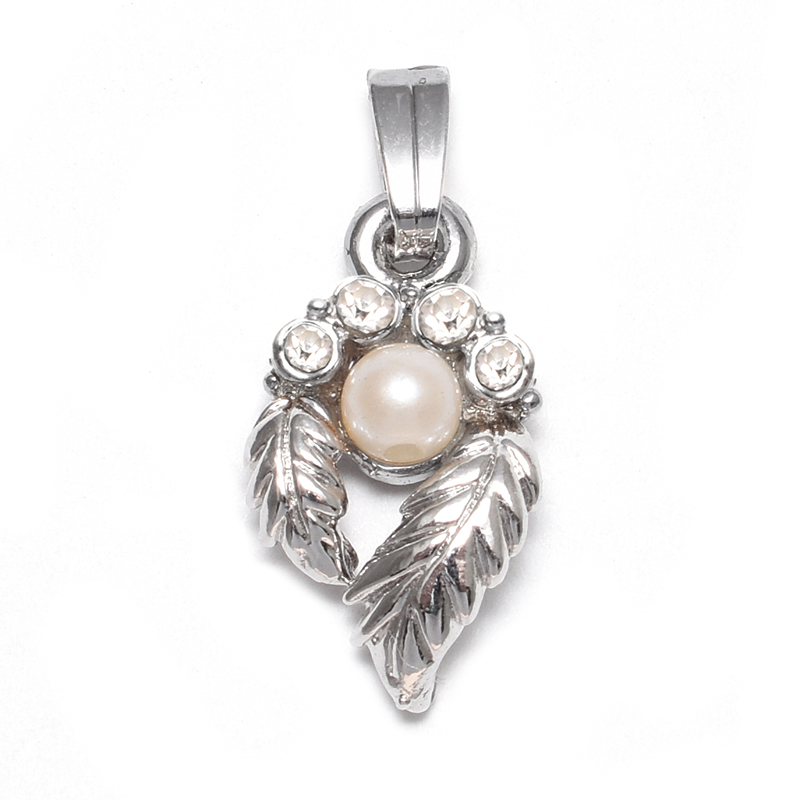 Leaf Shape Pendant (Nickel Plated / Crystal)