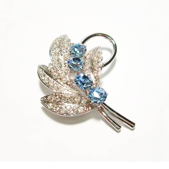 The sleek leaf-shaped brooch flaunts sapphire Swarovski and Oktant stones of exceptional quality. It comes with refined artificial rhodium plating in a stunning way. This stylish brooch is a perfect gift on special days.