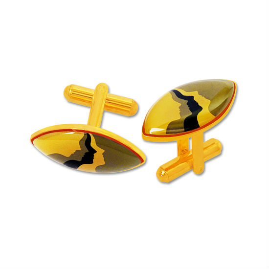 Upgrade your accessory wardrobe with this leaf cufflinks shining with luxe. This leaf-contoured one spotlights domed glassy top which reveals an optical illusion picture in artistic colors. Carefully gilt, this modern-weds-luxurious cufflink adds a tinge of glamor to you clothes.