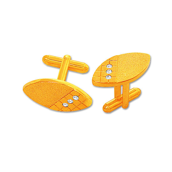 Show that discerning quality in you by placing this leaf cufflinks gleaming with luxe. This leaf-shaped one calls attention to a textured checked pattern, which is spiced up with three specks of stones atop. Plated with gold, this modern-meets-classy cufflink boasts a slightly ostentatious style.