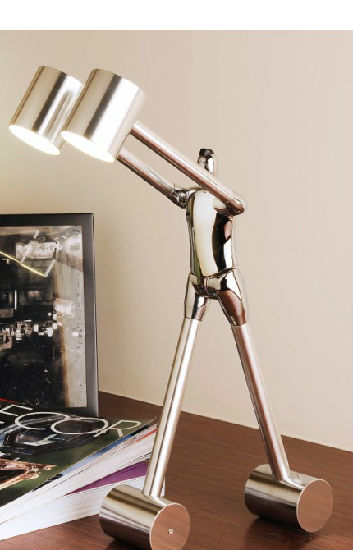 "Learn to Max"—Standing above two wheels expressing a quick pace of learning. In addition, lighting angles are adjustable by moving the legs, arms and waist, which signifies learning anywhere without limitation.