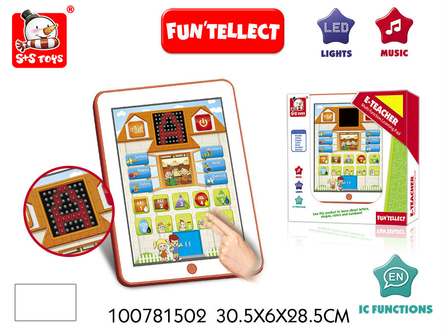 Article No.:100781502 Size:30.5x6x28.5 cm Package:window box CBM:64x57x62 cm Carton volume:0.2262 m³ Gross weight:20 kg/carton Net weight:18 kg/carton Pcs/carton:36 pcs/boxes MOQ:1 boxes Material:Plastic IC:English Age:From 6 years Series:Learning Series Package language:English Light:No light Control:Touch-screen