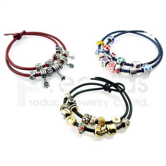 This featured leather bracelet is strung with fancy fashion beads either in vivid or gold-and-silver-plated finishing. Each fashion bead is finely crafted with adorable designs and incredible details. Show your edgy side with this rocking leather bracelet.