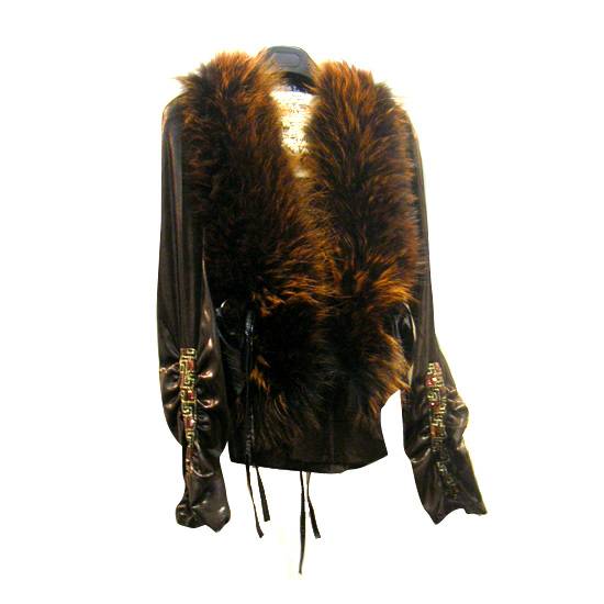 As shown is a leather coat for ladies. This leather coat makes use of sheep leather which is well known of its softness and durability. Fox fur is around the neck and shoulder for keeping one warm.