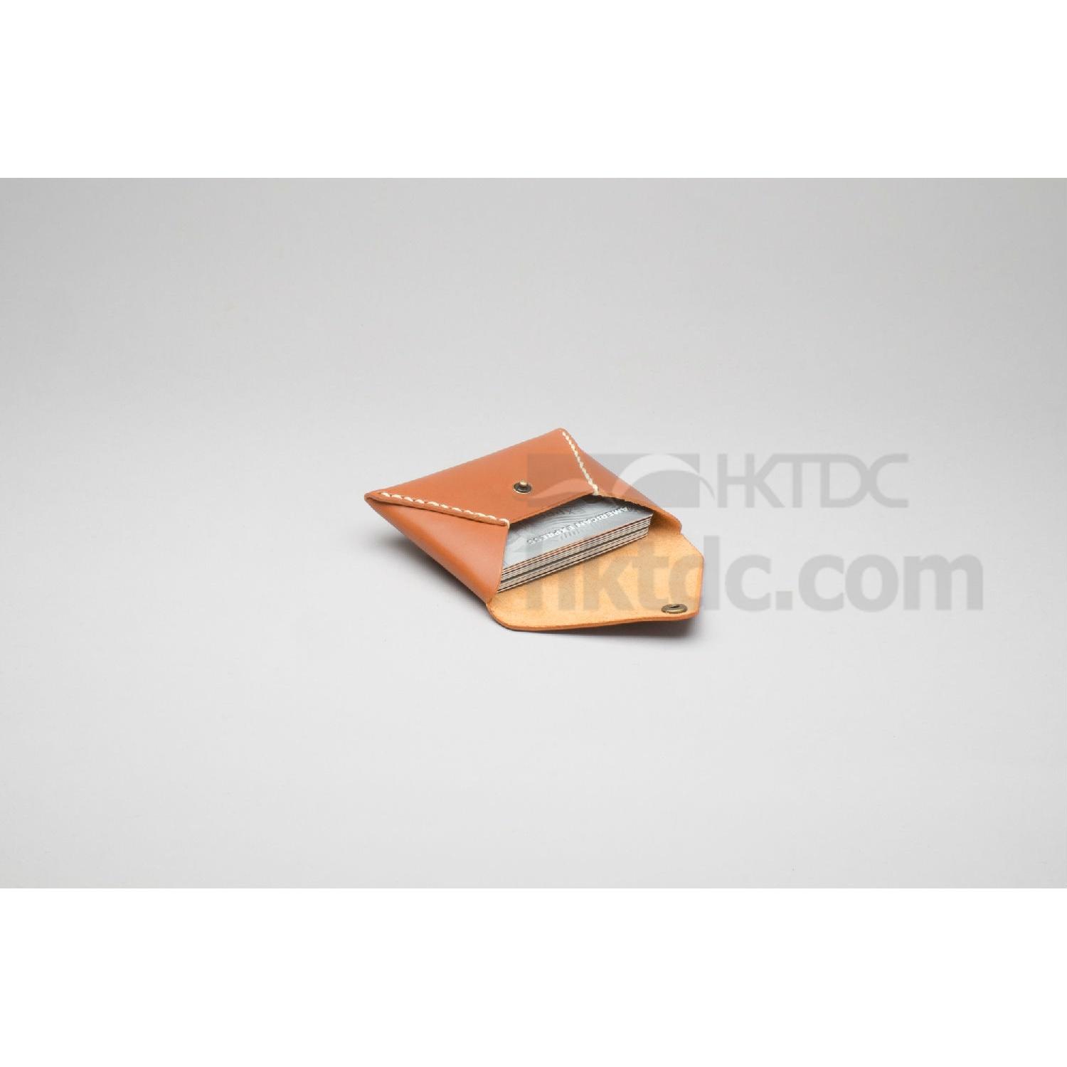 Use this envelop cardholder to carry your business cards with you on the go. This leather envelop cardholder features a front flap cover with a button snap closure to store your business cards securely inside. The vegetable tanned cow leather lends a supple soft-touch to this leather cardholder.