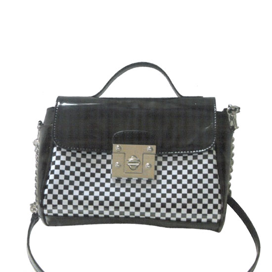 This is a fashionable handbag in black. It comes with eye-catching checked patterns in white and black. This handbag surely is a great addition to your wardrobe.