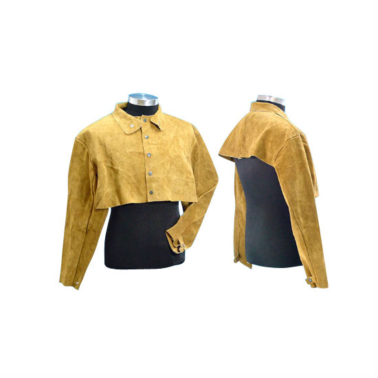 Protect yourself from the hazards of flames and abrasive fluids during welding with this leather jacket in chest length. It has a button placket in the front for a quick fastening, while the belt on the long sleeve cuff wraps your wrist to achieve a snug coverage.