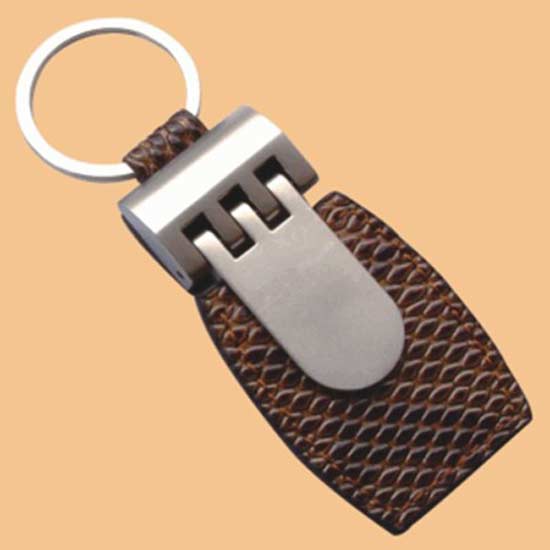 The design of this keychain flaunts a simple yet classic style. The keychain features genuine leather decorations matching with a brushed metal buckle. This keychain can be attached to keys or bags to exhibit an elegant style.