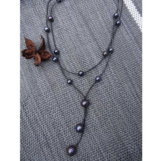 The leather necklace is finely made of 7-8mm peacock round pearls and three 12-13mm pearls as the pendant. It comes with a simple and elegant style at 90cm length. It is surely a wonderful addition for your wardrobe.