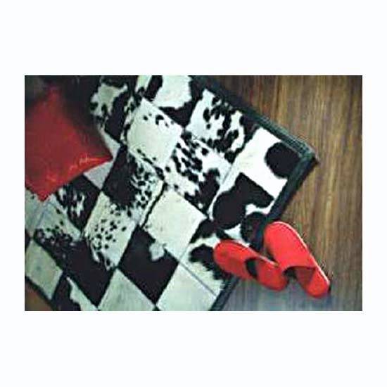 This leather rug is the perfect accent for the entry of your hallway. It adds elegance to any room for years to come. Its surface is covered with fur. The black and white colors make the rug easy to match.