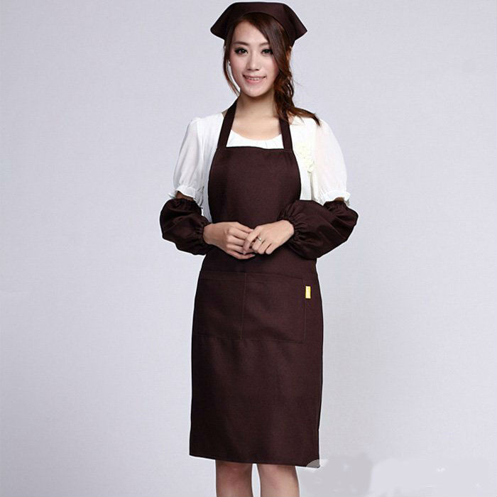 Demonstrated is a classy bib apron in bright colored appearance.