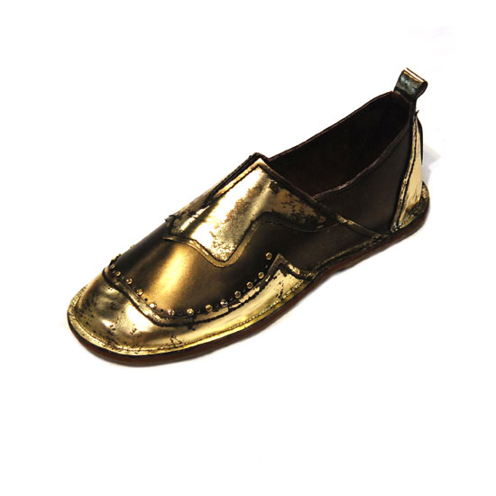 This is a pair of leather shoes that comes with a metallic golden finish. The allover rivet ornaments add a touch of style to the whole piece. This pair of leather shoes is a great idea to mix and match with your casual wear.