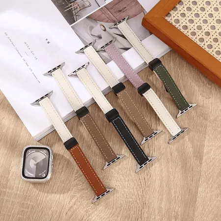 Leather watch strap with magnetic buckle applicable for classical watch and apple watch full series