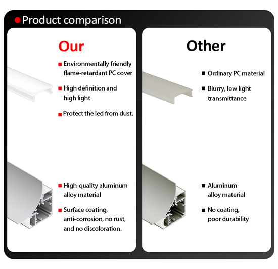 Our product field covering mould making,PC profiles, LED linear light housing ,Led strip light housing, and LED tube light housing, and etc. We provide One-stop service for customized products from mold design, mold-making, to product extruding or injection.