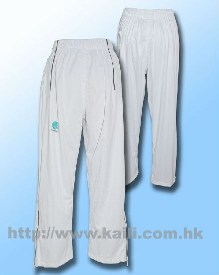 b、mock pockets on both side, rolled gray edge decoration on pocket fly; c、5#YKK Nylon zipper on the vents in the bottom of trouser legs;