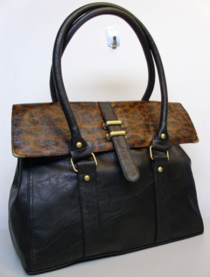 • The flap make with leopard PU, Have leather look PVC tab decor on the flap.