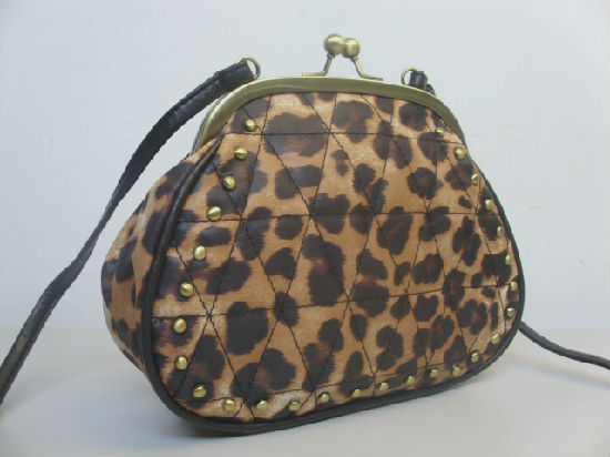 • Studs leopard PVC with plain PVC frame shoulder bag.