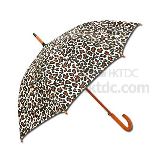 This leopard-print umbrella comes with a comfort-grip handle with a release/retract button for convenient single-handed operation. The umbrella features eight 24” panels and a wooden shaft and tips. This large and wild umbrella is enough to get you through seasonal drips and drizzle.