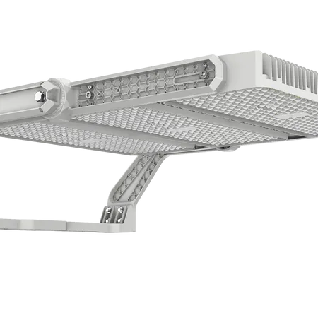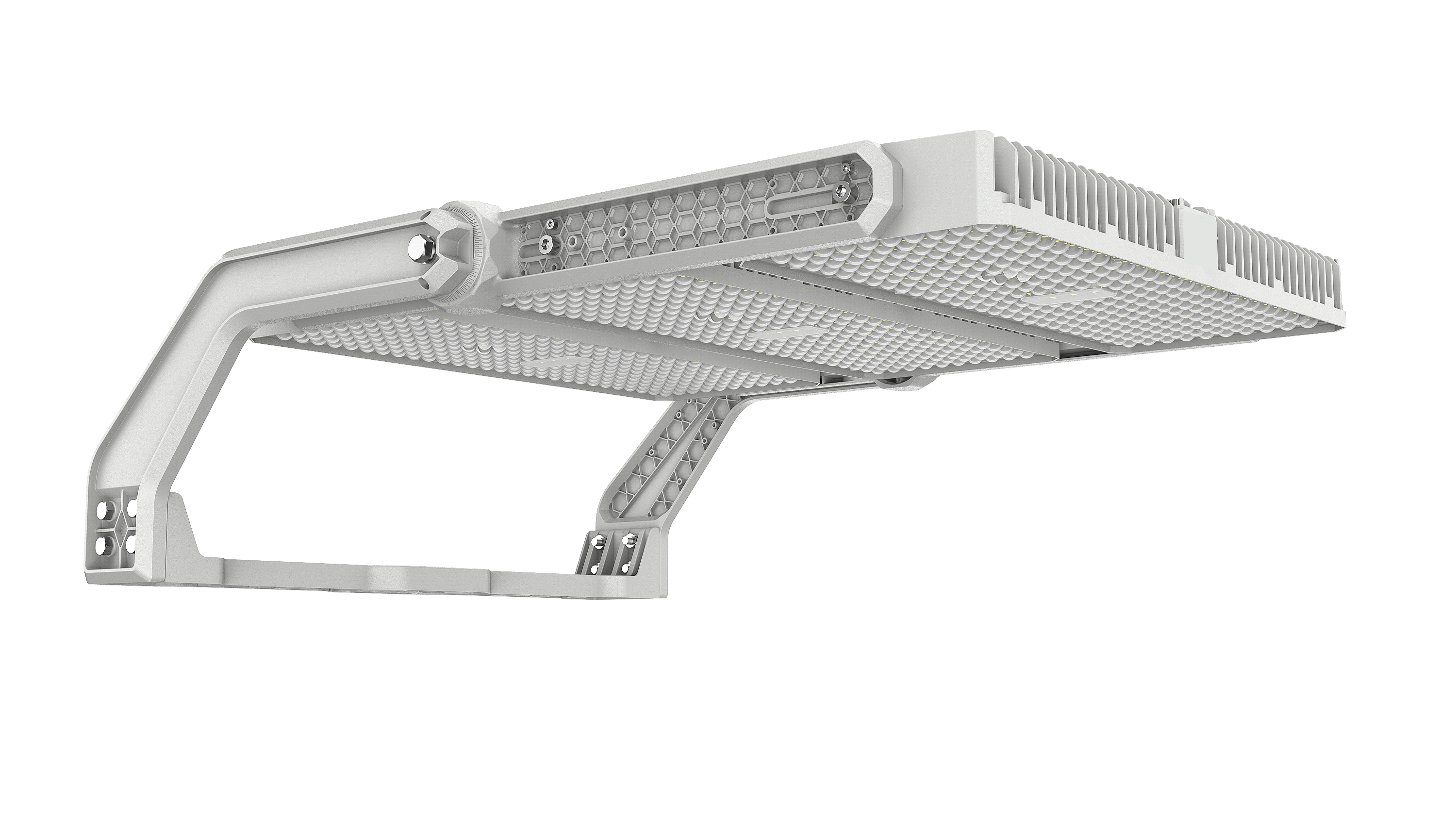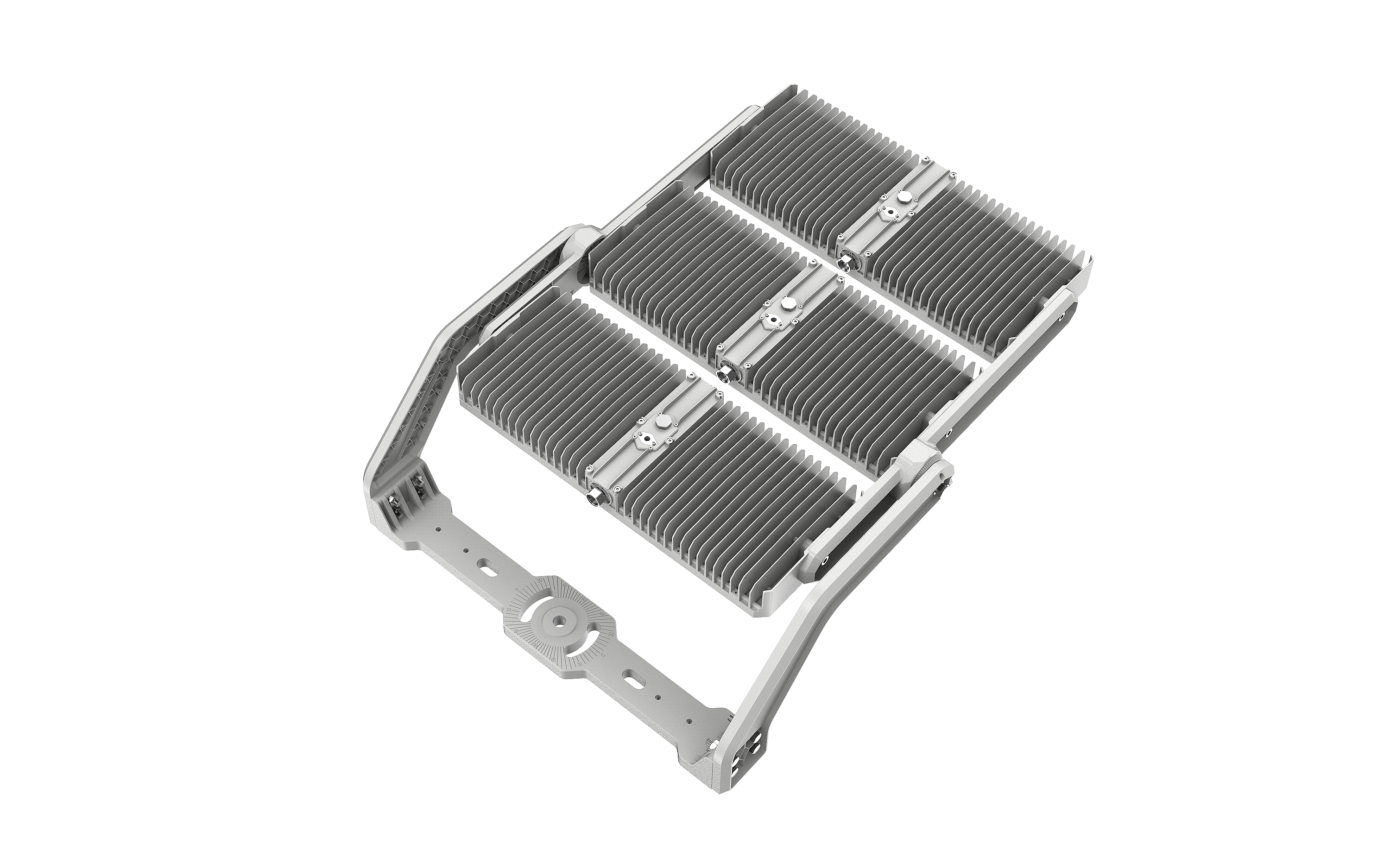 The bracket of these sports field lights is constructed from durable die-cast aluminum, providing sturdy support and resistance to outdoor elements. This robust design ensures long-lasting performance and reliability, even in harsh weather conditions typically encountered in sports field environments.