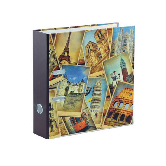 This is a lever arch file with a trendy and elegant design. It is printed with the different pictures of famous buildings in the world. This file is made of high-quality material for durability.