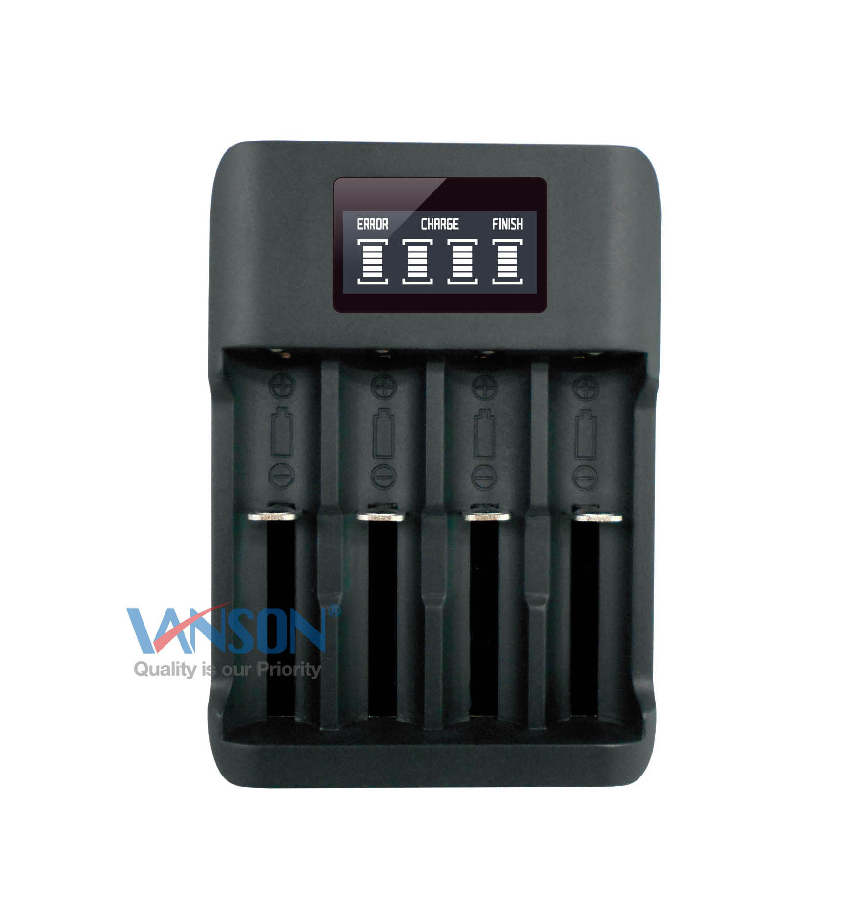 Charging current: 1-4pcs AA/AAA/AAAA: 450mA ; 1-2pcs Li-ion: 900mA; 3-4pcs Li-ion: 450mA