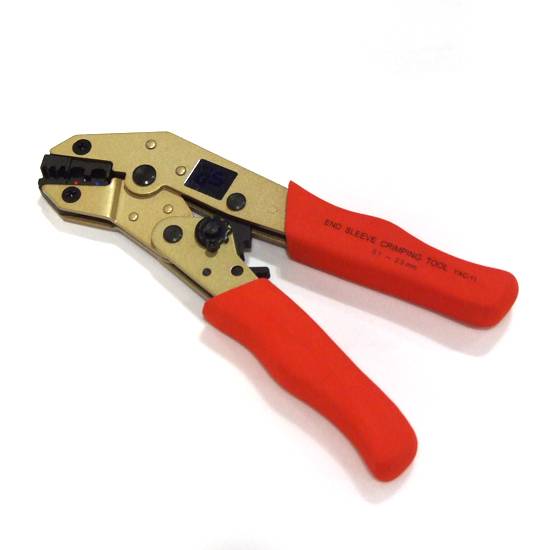 This is a light crimping tool for end sleeve and pre-insulated terminals. It comes with a sliding blister and card. It is safe and convenient to handle.