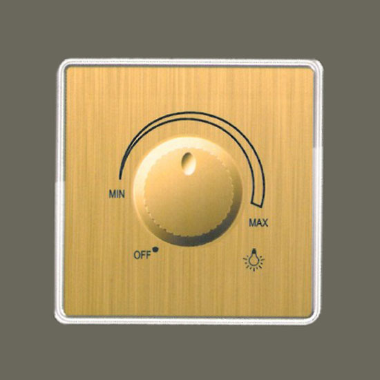 This is a light dimmer featuring a golden front panel. It is made of stainless steel material for durability. This item is a great addition to your home.