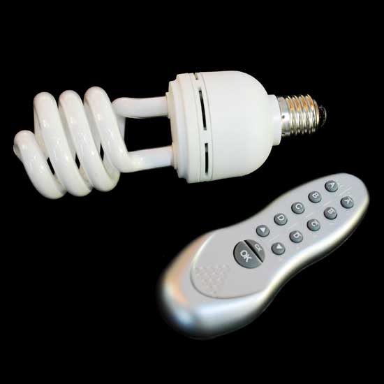The featured remote control unit is designed to control the energy saving bulb with a multi-level dimming function. It is compact and streamline in design for a modern look. The spiral energy saving bulb features high brightness with a low glare.