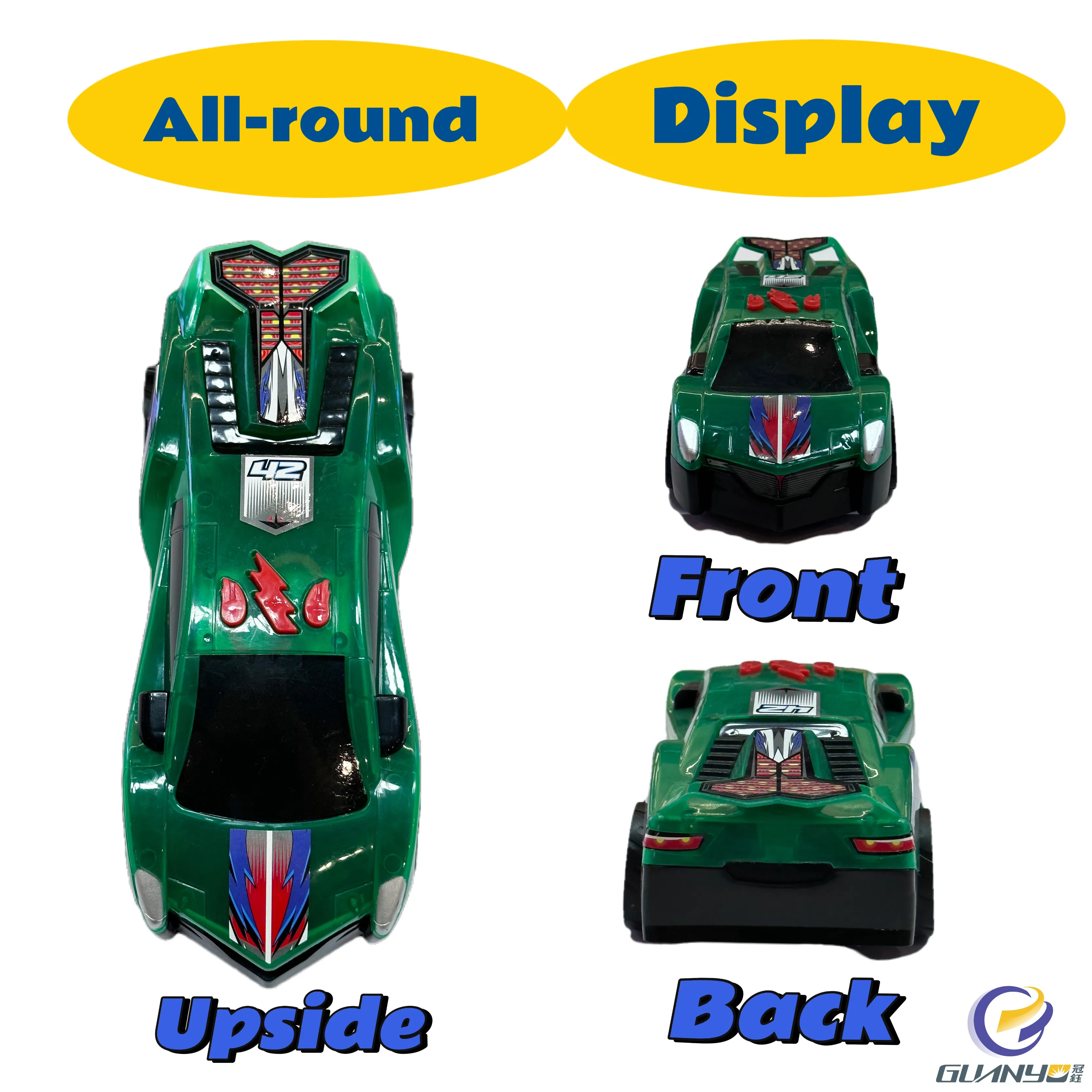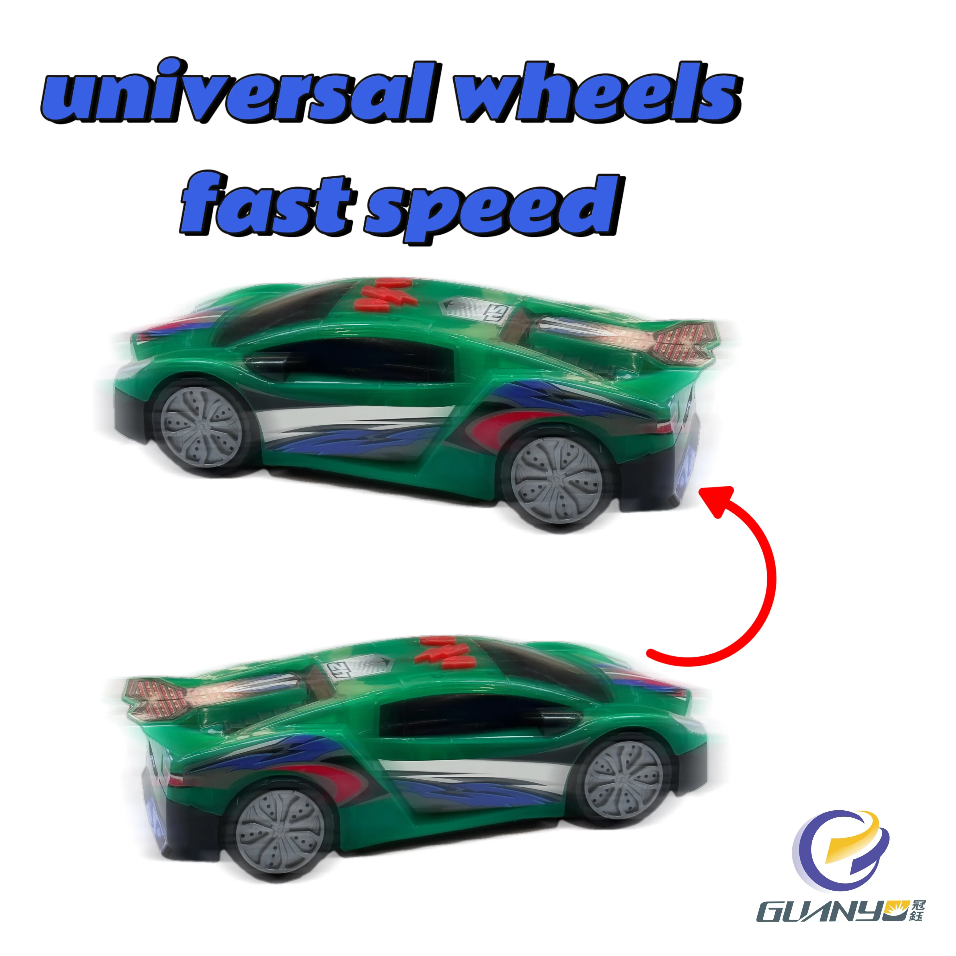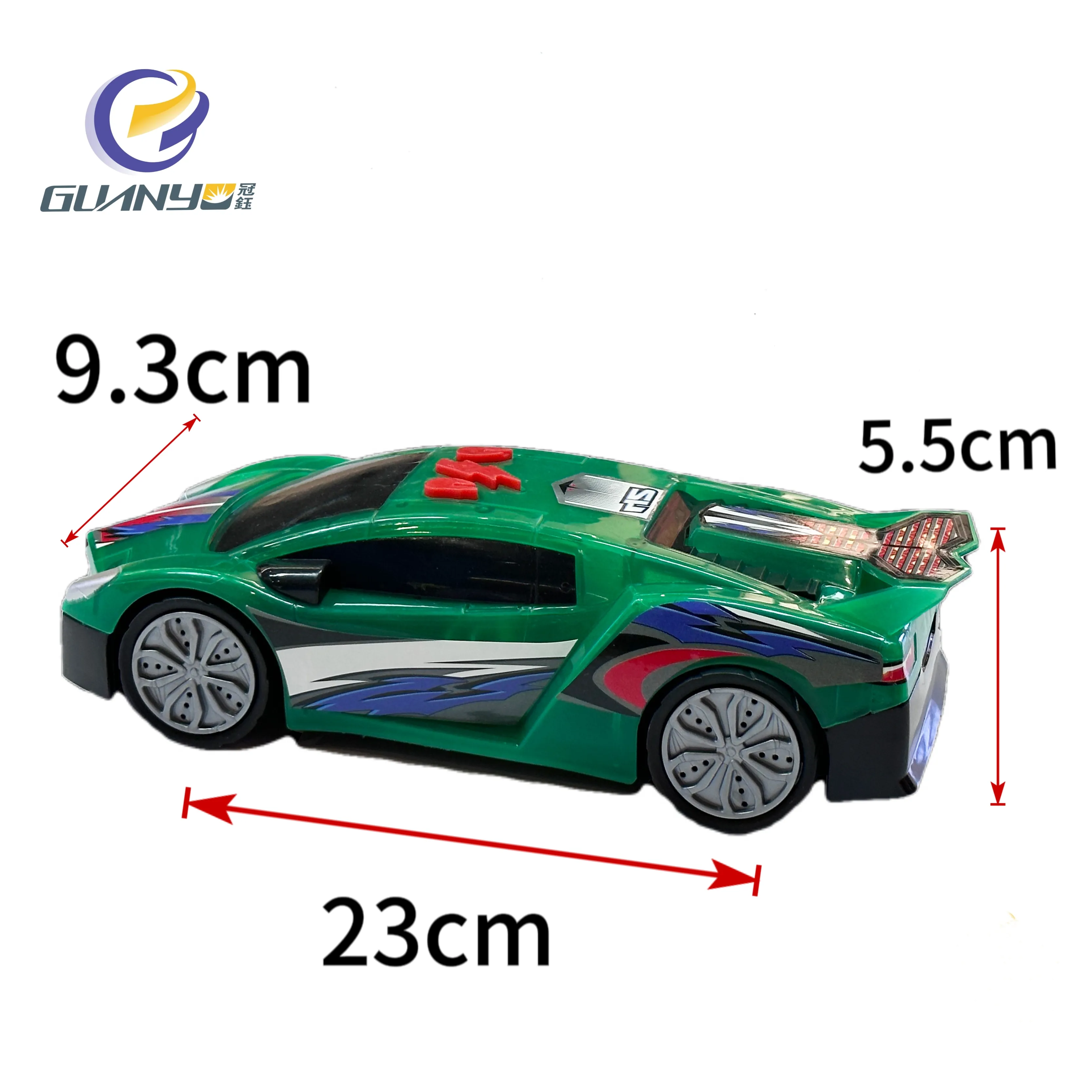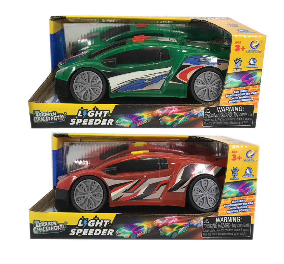 Light up car free wheels light and sound plastic car for kids3xAA batteries, Light and sound effects free wheel car playing fun, Made of ABS and PP materials, safe and durable. Packaged in display boxes with "TRY ME" function, It is convenient to intuitively understand the product functions on the shelf.