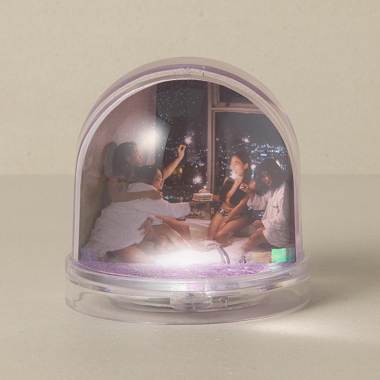 Give this lovely snow globe a shake for a chilling snow-fall effect. In a classic dome shape, this snow globe features a glowing LED effect, allowing your desired image to be shown with the special lighting effect. This snow globe is perfect to be your desk decoration or even paper weight.