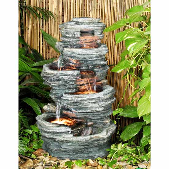 This lighted fountain craft comes with a classical design. With pointed mouth allowing water to be poured from one pot to another, the polyresin fountain features water flowing in a gentle stream. The decorative fountain craft is ideal for your garden decor.