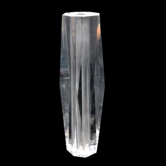 This crystal glass decoration is designed for beautifying chandeliers. It features a clear transparent look with delicate cuttings. The crystal glass decoration is finished with a flat octagon design at two ends.
