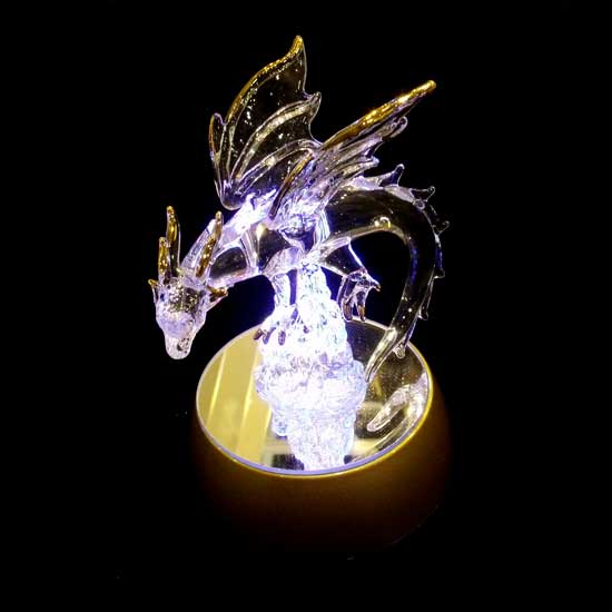 Displayed is a vivid dragon decoration coming with glaring light for added exquisite. Excellent craftsmanship offers a splendid appearance to the transparent decoration. Adorn your home with this subtle dragon decoration.