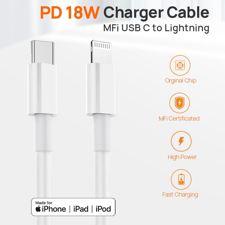 1. 6ft USB-C to Lightning Cable with MFi certification (Made for iPhone iPad iPod) requirements. The latest C94 lightning connector to ensure that no warning messages pop up and is designed for fast charging