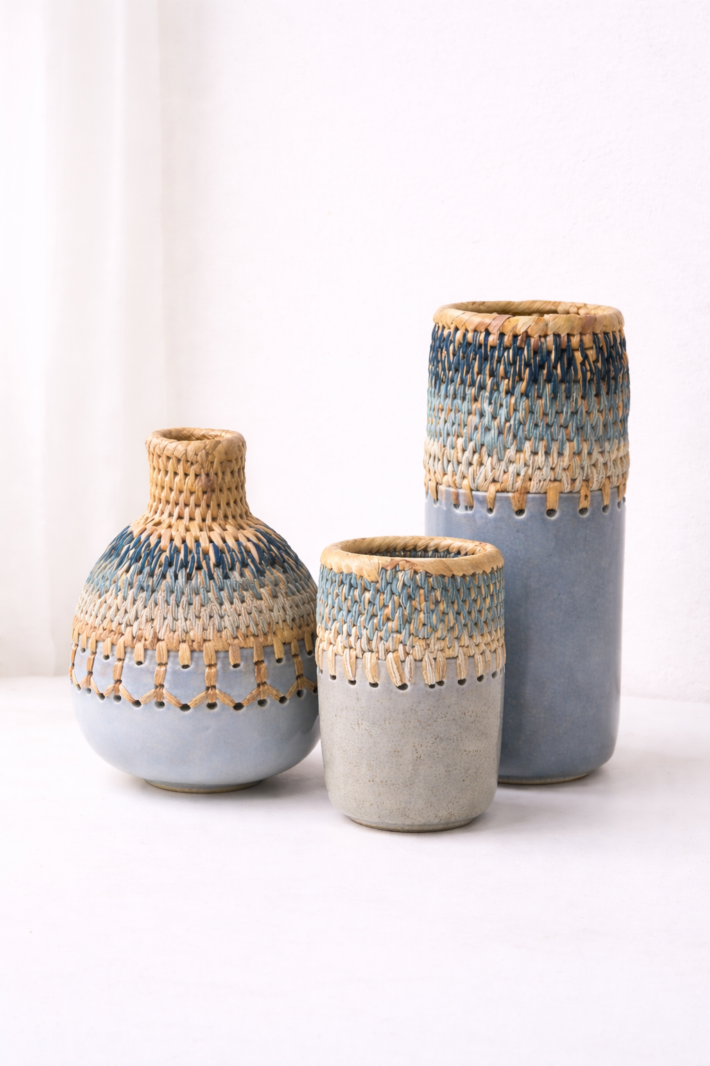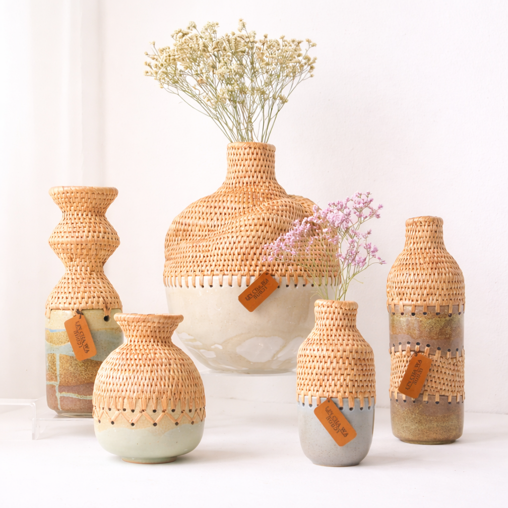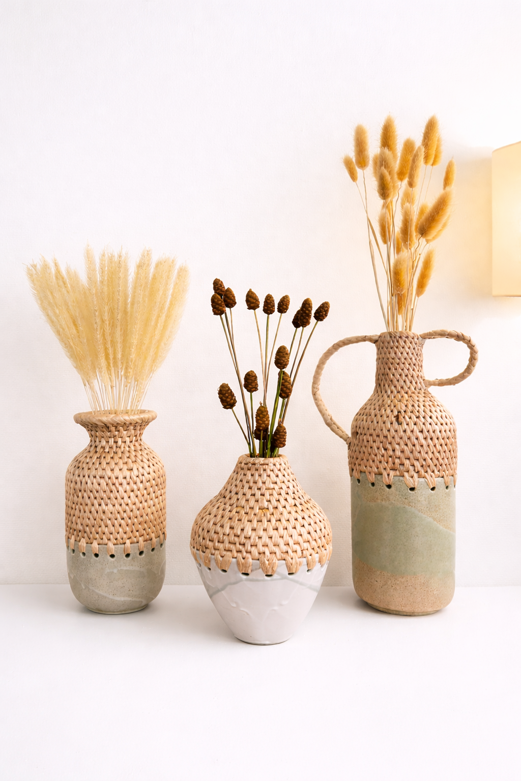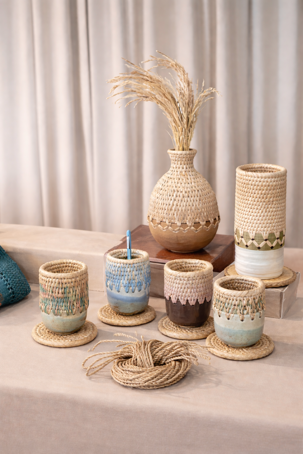 Combining ceramic craftsmanship with handwoven water hyacinth, this collection draws inspiration from Lanna heritage, reinterpreted through a contemporary lens. The contrast between structured ceramic forms and soft natural weaving creates a distinctive texture and visual warmth.