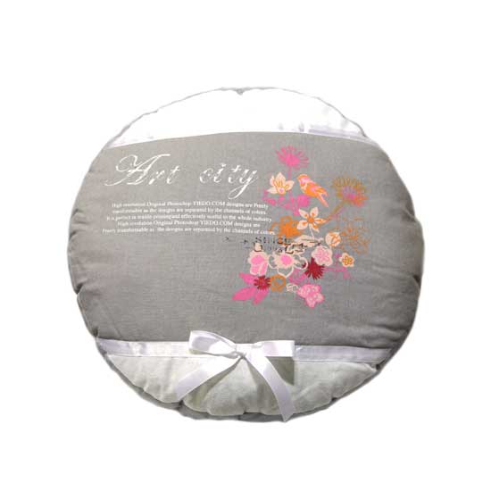 This round-shaped cushion spotlights flower and bird motifs. The stylish cushion is accented with a white ribbon bow on the front for added appeal. The quality linen cushion is ultra soft and comfortable to the touch.
