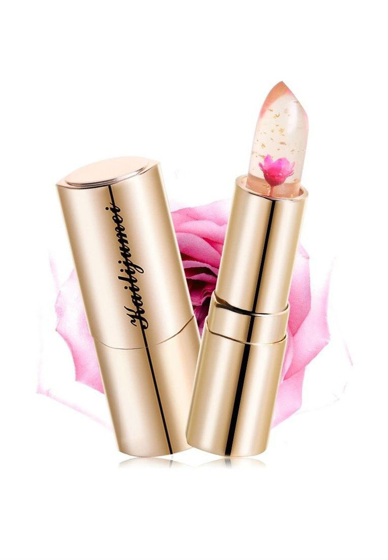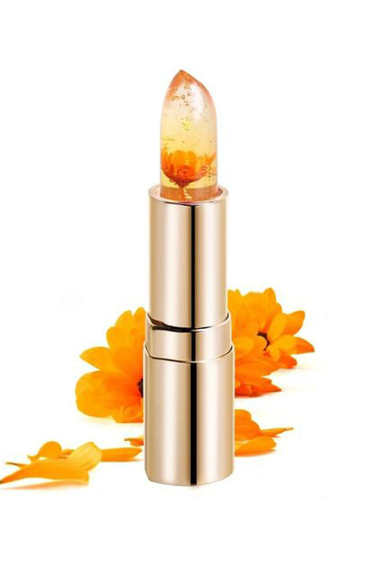Showcased are the US limited edition jelly lipsticks packaged in gold-toned tubes. Characterized by a well-shaped gelatinous texture and a dry blooming flower inside, these striking jelly lipsticks are as moisturizing as they look. Delivering a surprisingly vibrant shade after applied to the lips, these lipsticks express a changeable and custom color according to the variation of body temperature.