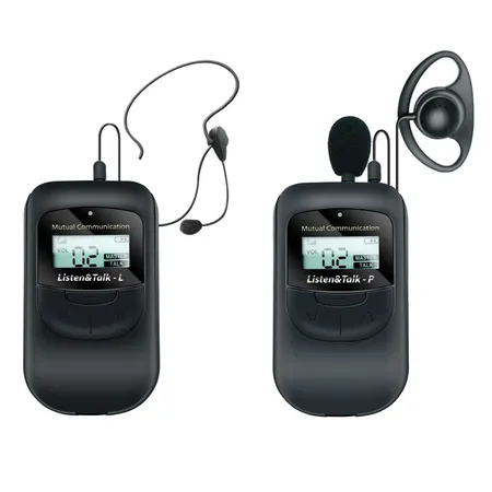 Easy to put on and stabilized ear set boom microphone for a leader and high desirable plug in microphone with comfortable D shape earphone for participants