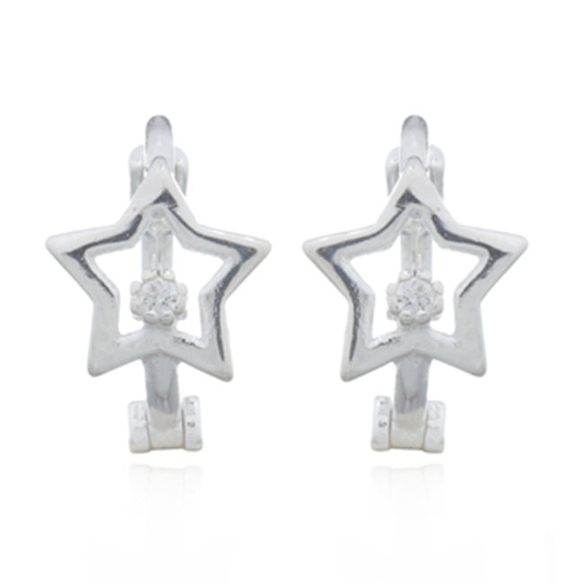Little Diamond In Star Silver Huggie Hoop Earrings