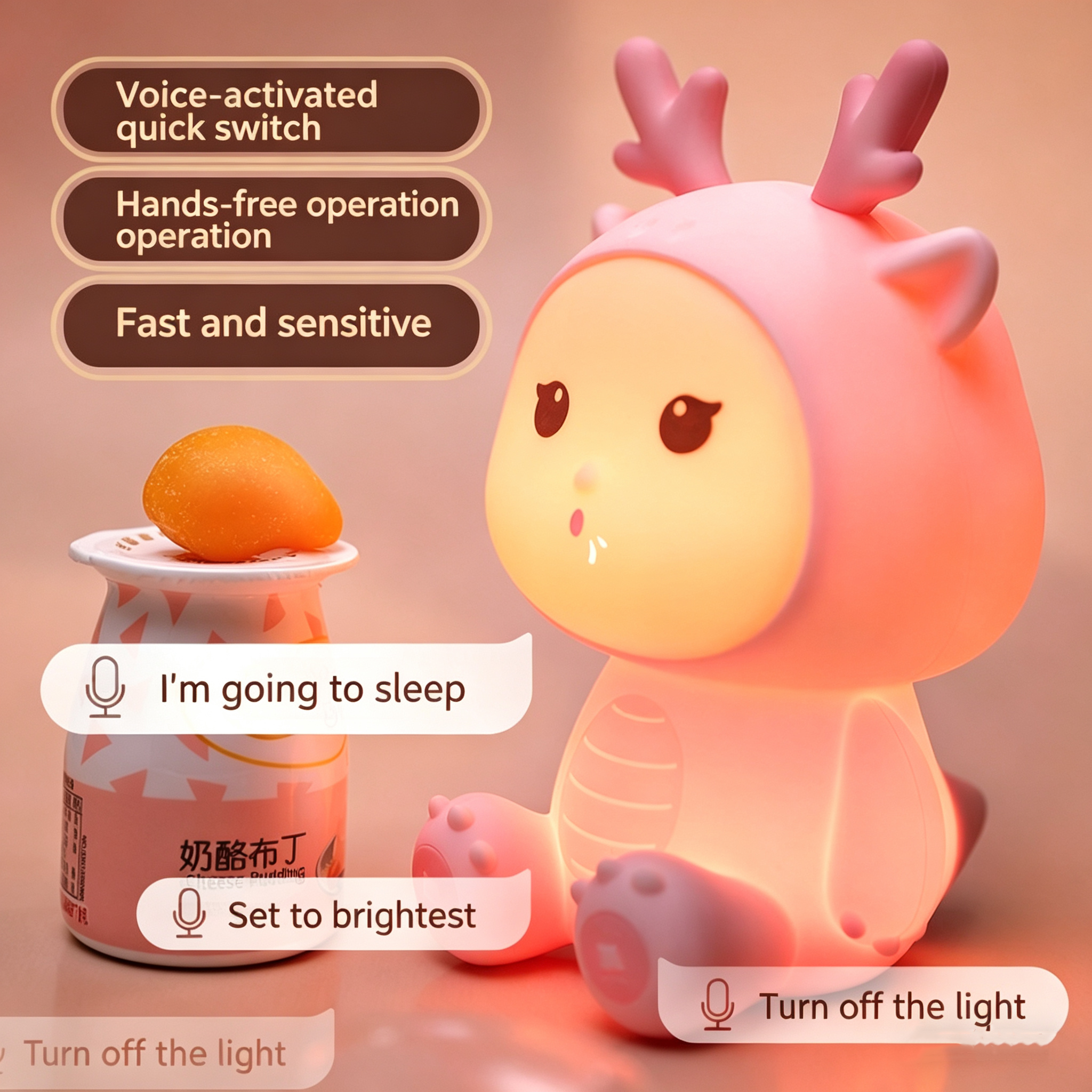 1. Voice-Controlled Smart Operation: Built-in AI chip responds to voice commands like “Turn on the light”, “Brighter”, “Change color”, or “Turn off the light” — no app or Wi-Fi needed, perfect for hands-free use at night.