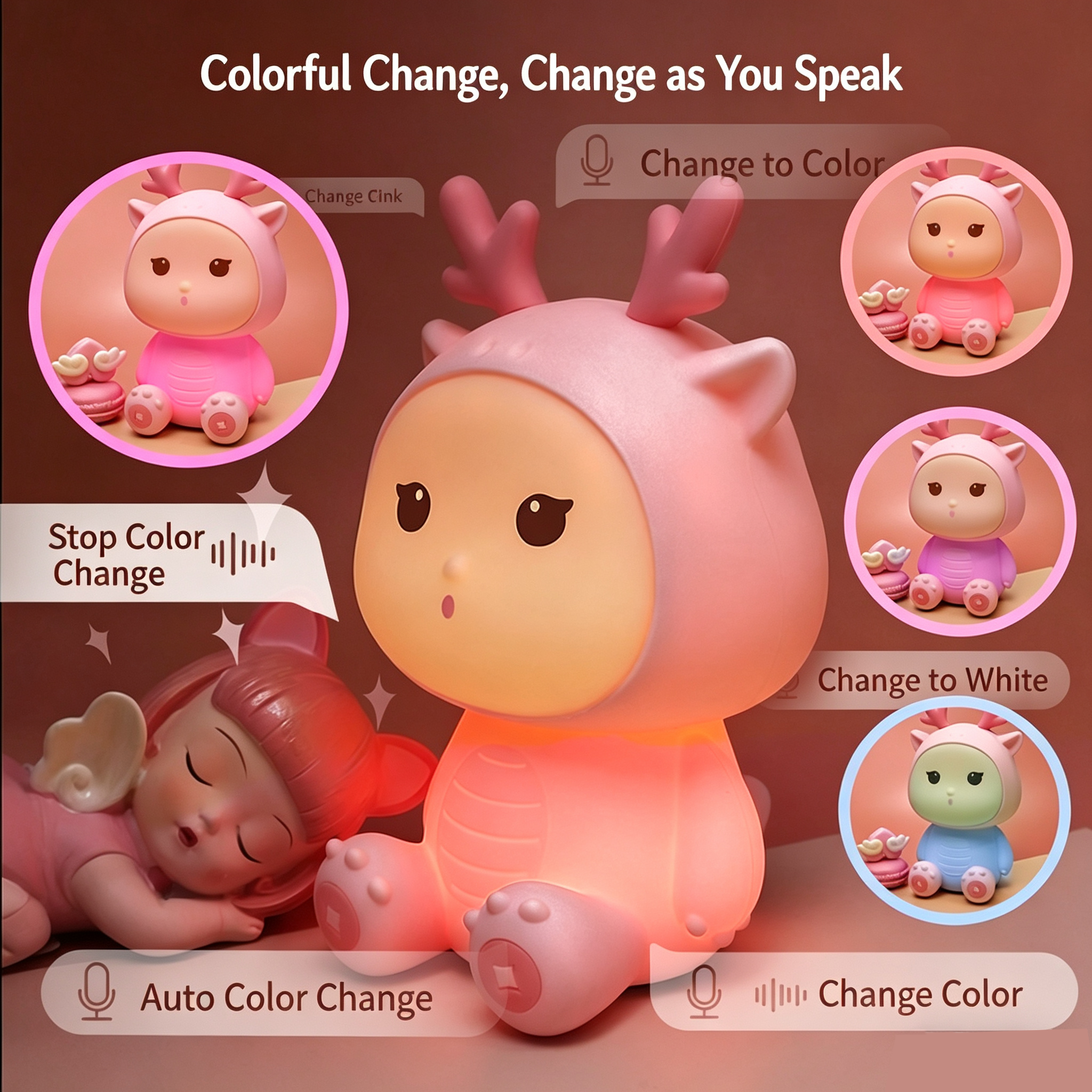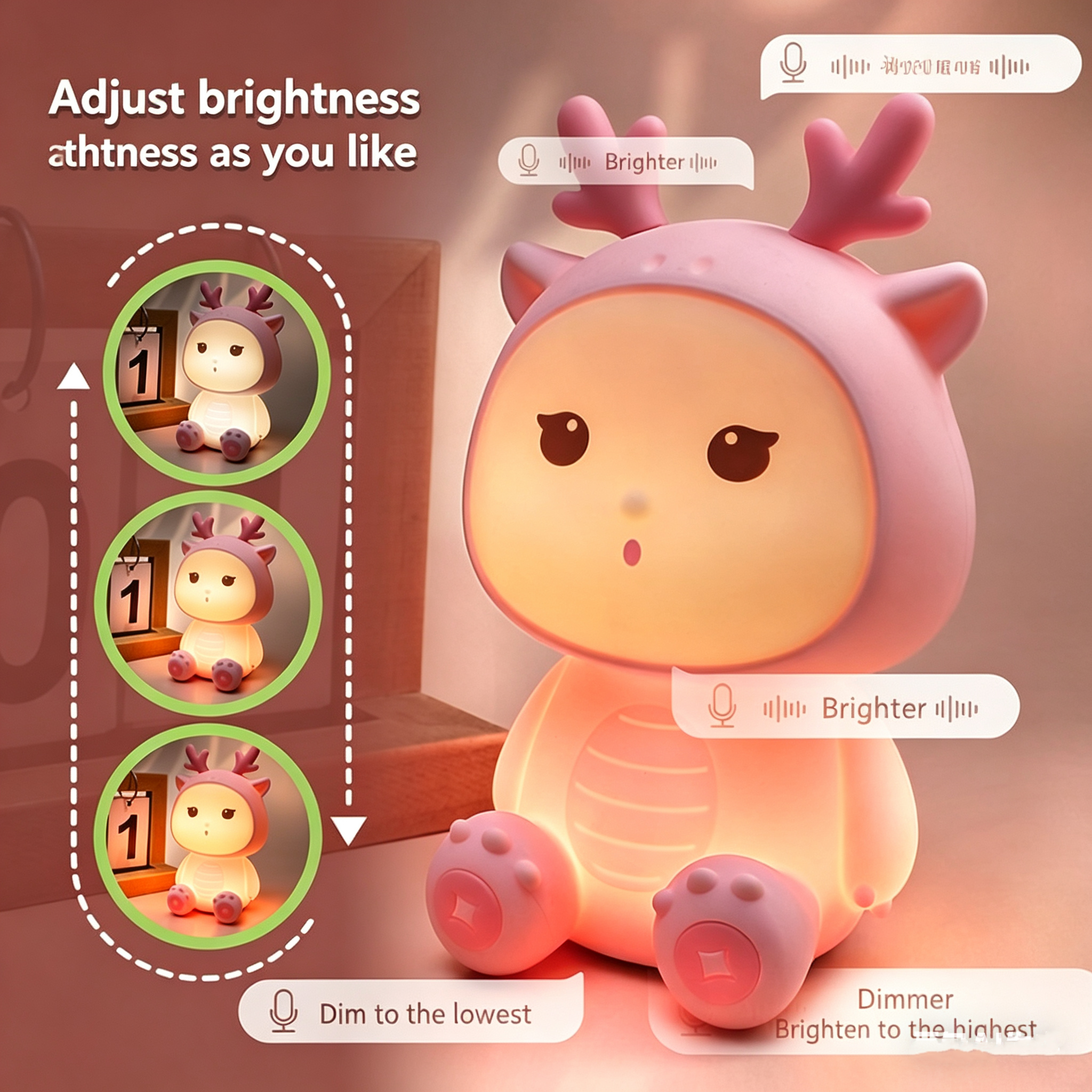 Little Dragon Silicone Night Light - Voice-Controlled Colorful Ambient Lamp, Creative Bedside Decoration, Perfect for Kids & Children’s Day