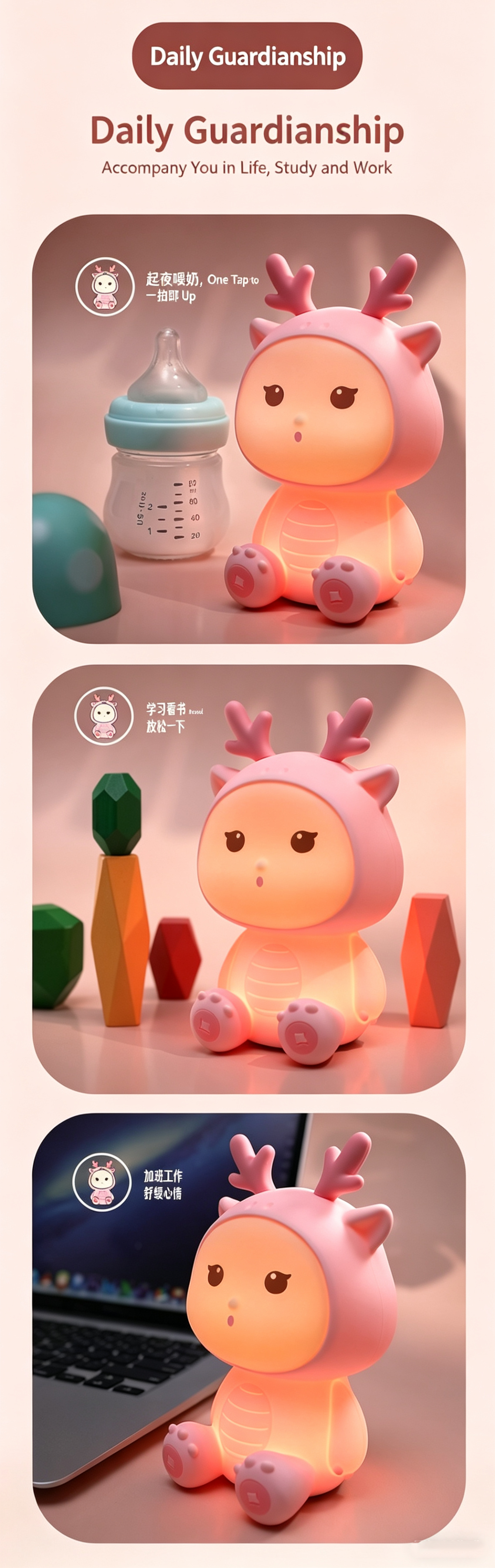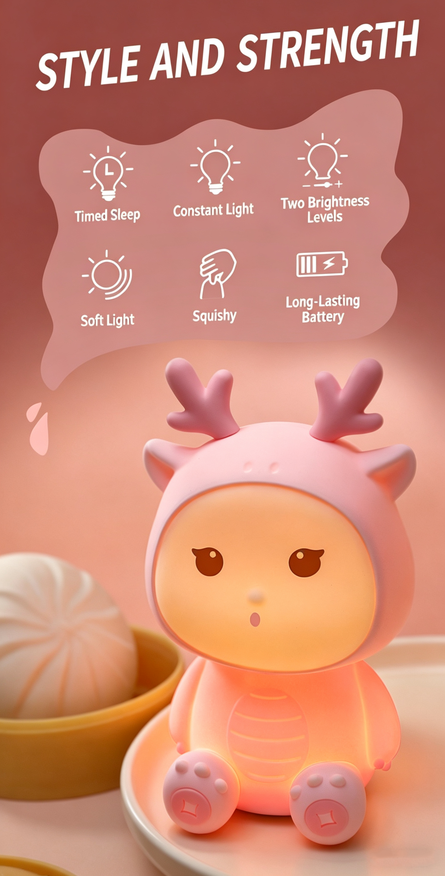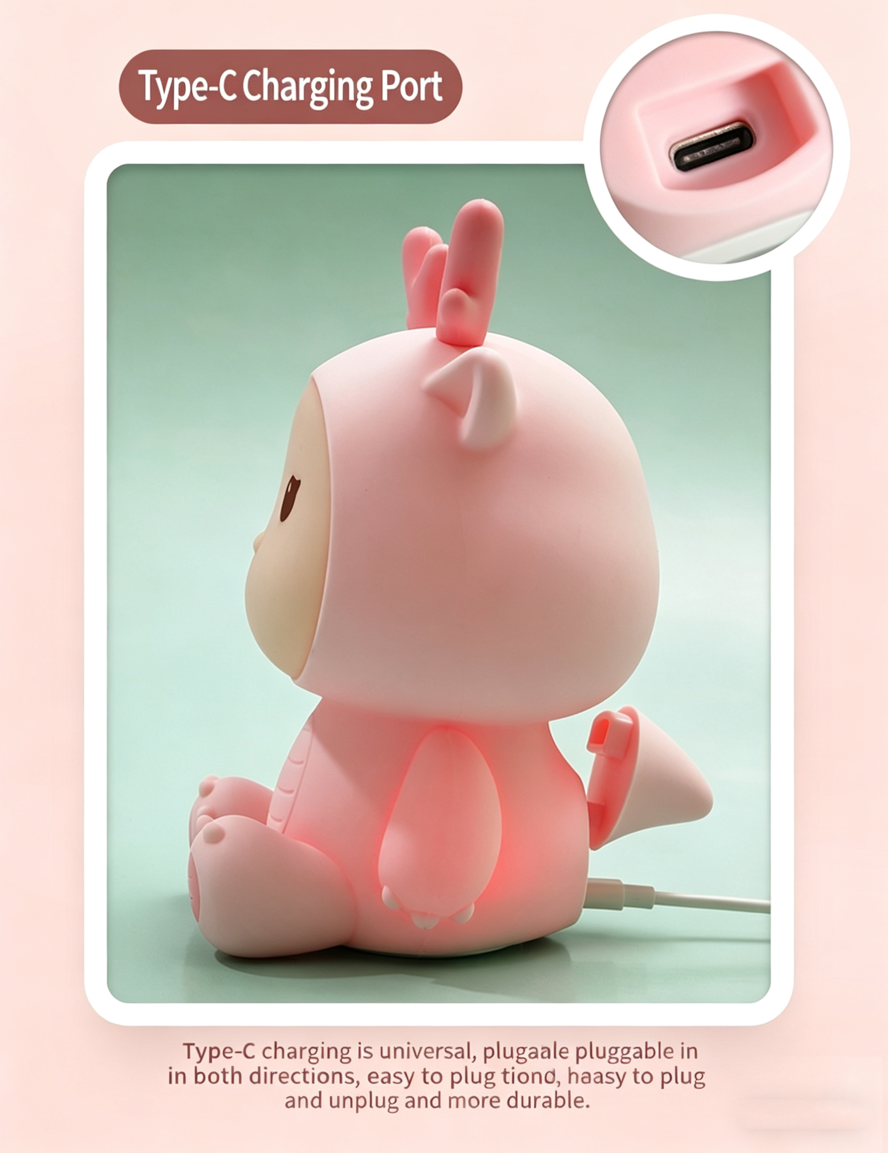 2. Tap & Pat Control: Tap the soft silicone body to turn the light on/off, adjust brightness, or switch modes — easy and fun for kids of all ages.