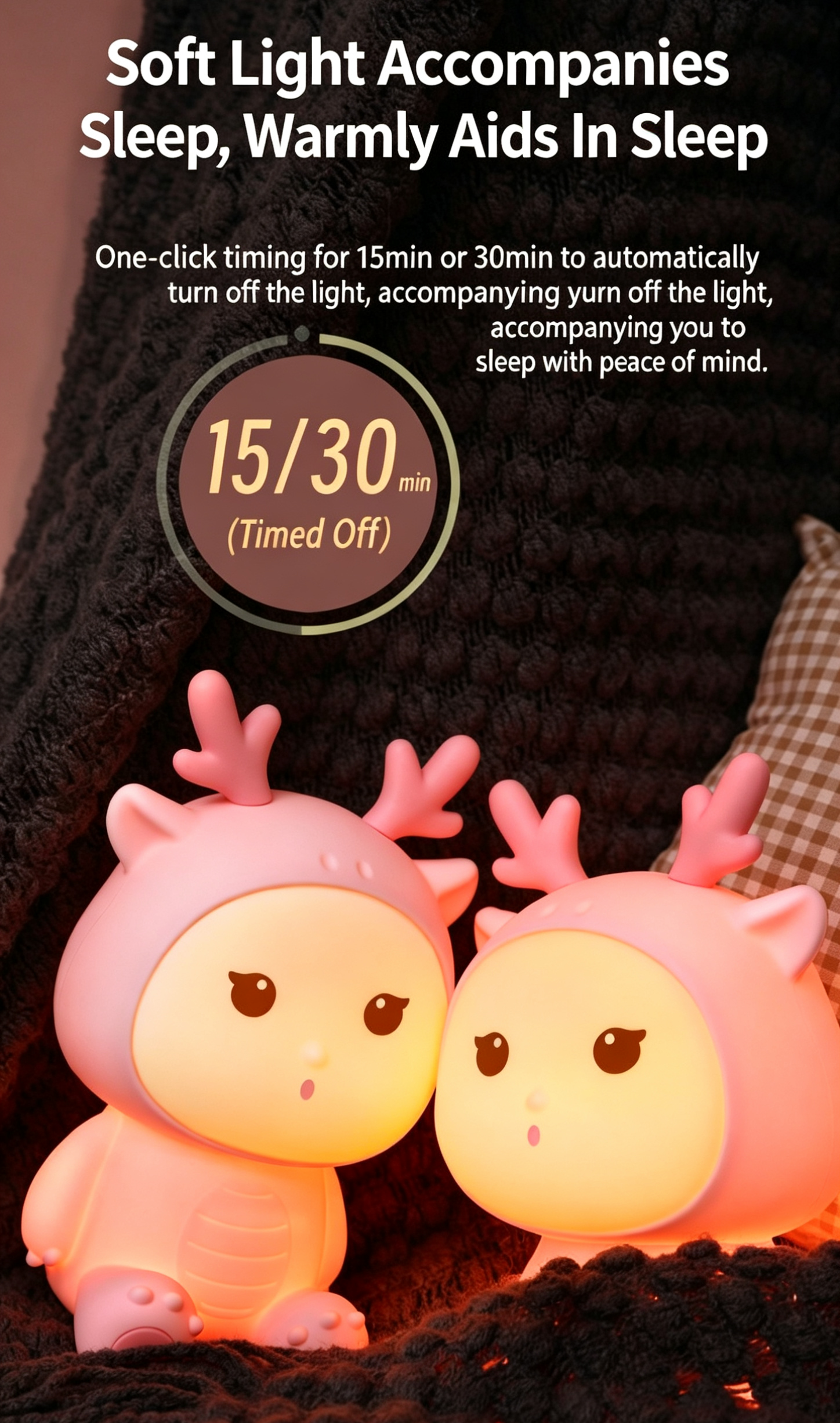 5. Timed Auto-Off: Choose 15 or 30-minute sleep timer to automatically turn off the light, helping kids fall asleep without leaving it on all night.