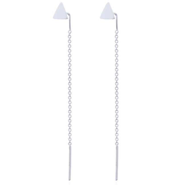 Little Triangle Rhodium Chain Threader Earrings in Silver 925