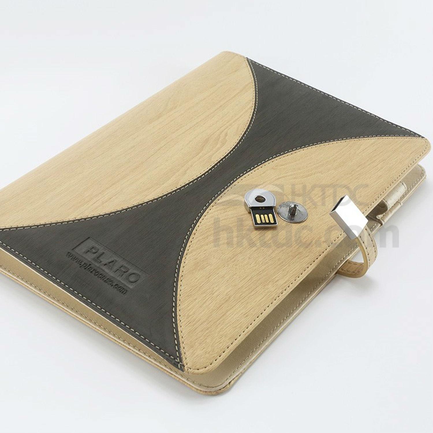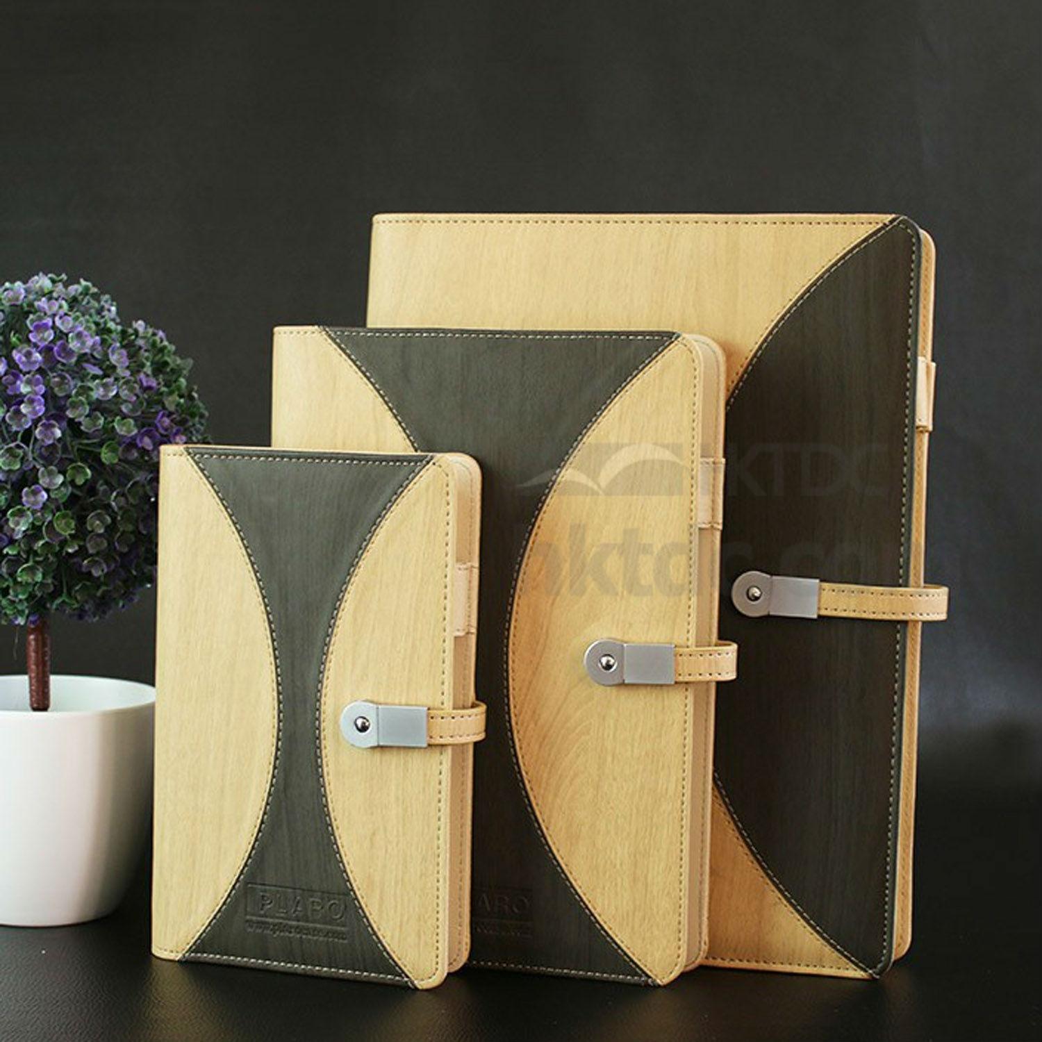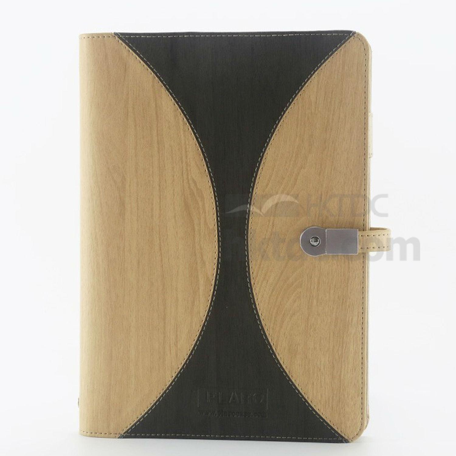 Wooden PU leather notebook with calculato, card slot pen insert, equipped with stainless steel loose-leaf binder and 60 sheets, filler paper.