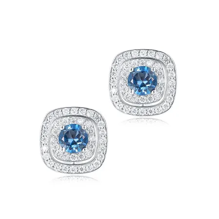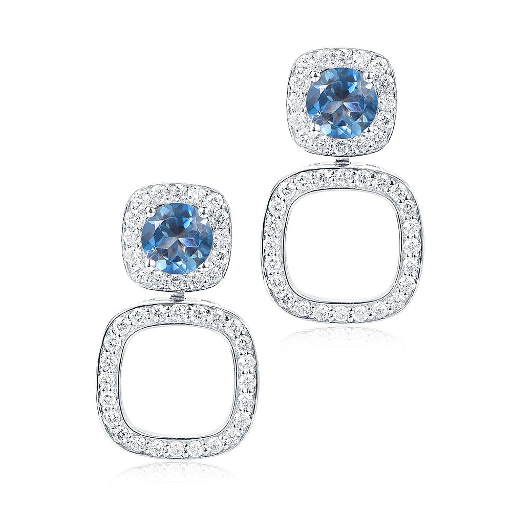 18K White Gold With White Diamond & London Blue Topaz EarRing