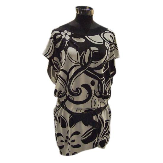 This is a ladies' long blouse made of 75% rayon and 25% nylon. It also serves well as a one-piece dress. This blouse has a round neck and specially designed sleeves. It is designed with elegant floral patterns and embellished with beading.