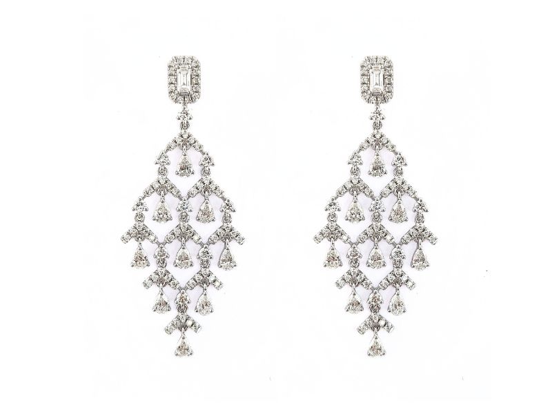 Long Diamond Earrings in 18k White Gold